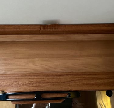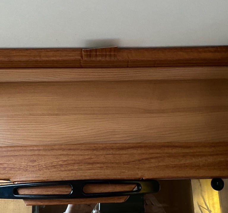 I used some white packing foam from an amazon delivery, cut it to shape and wrapped it with wood effect fablon to make these. They weigh nothing and take seconds to insert / remove and don’t look awful. Used them for a year now and am well happy.
