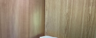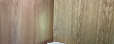 Finding the right wood effect vinyl to cover screw heads and blemishes and make any additions blend it. This is the stuff you need.