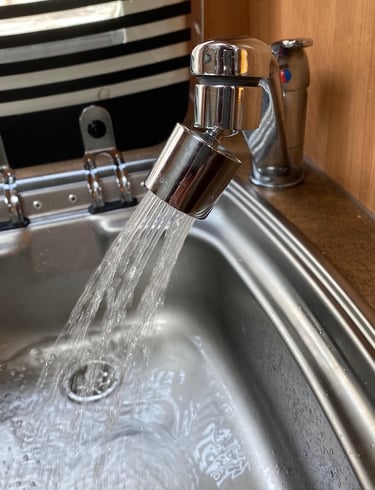 New nozzle for kitchen tap to reduce water usage. This is just ace! Seconds to fit, gives better coverage for washing up and uses 50% less water. This one comes with all the adapters you need and looks great.